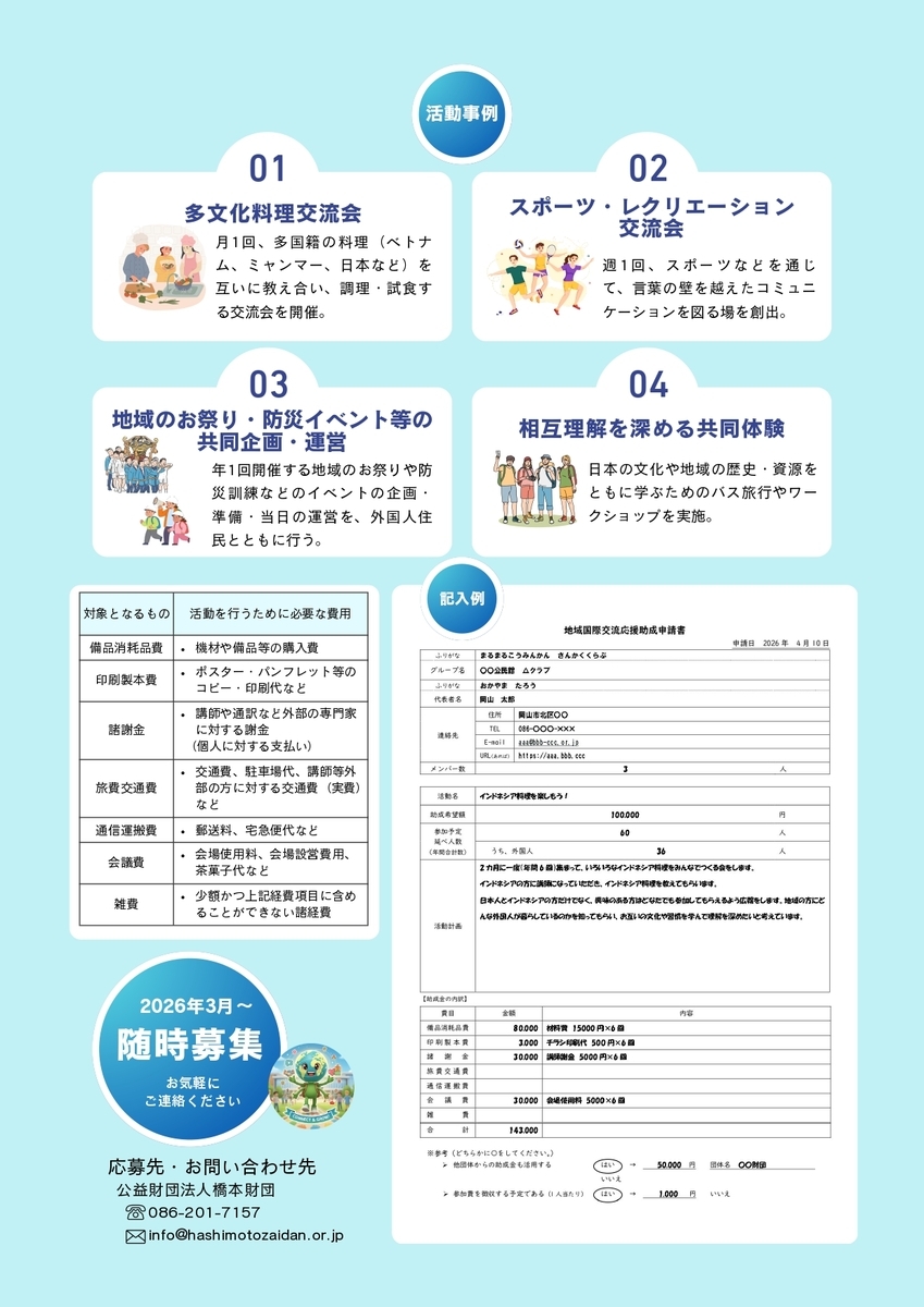 本助成では、外国人と日本人の顔の見える関係づくりを応援します。