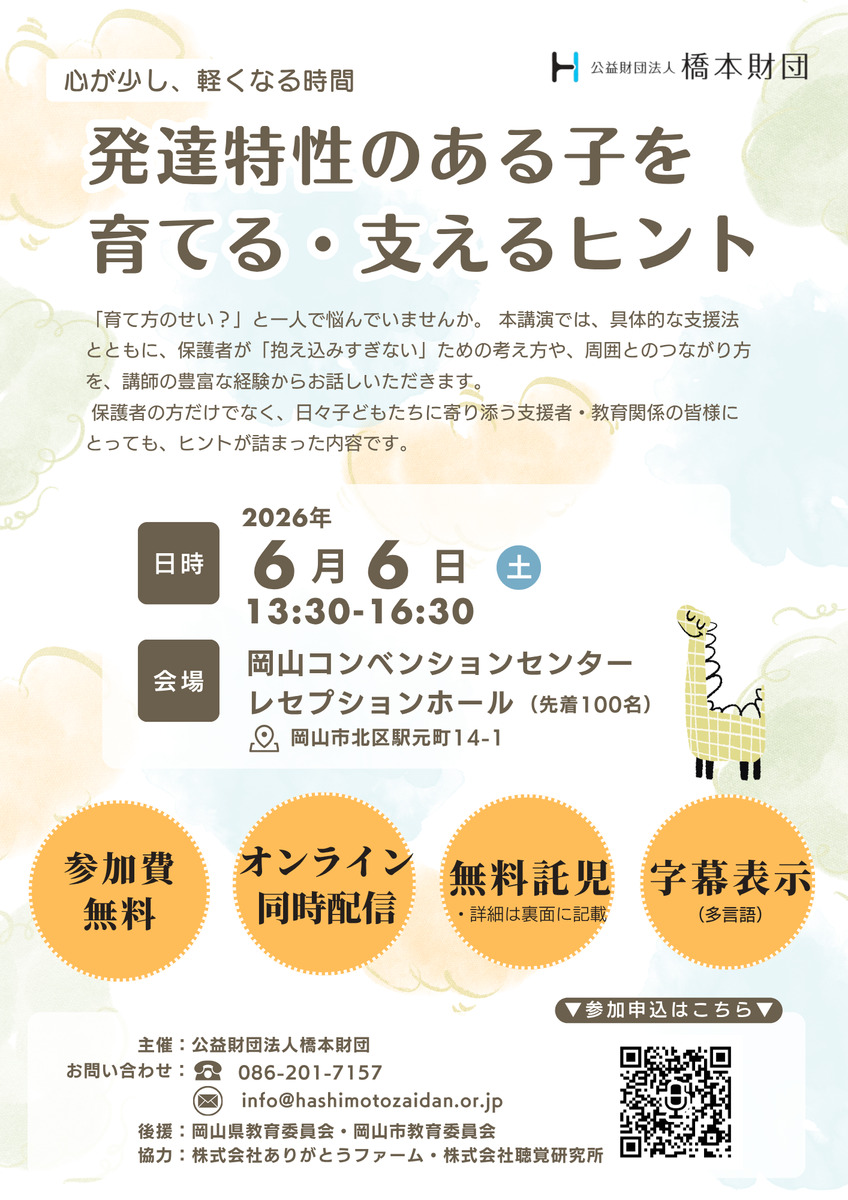 発達特性のある子を育てる・支えるヒントと題して講演会を開催します。